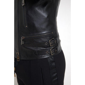 这款奢华的Dolce & Gabbana黑色小牛皮机车夹克可提升您的时尚品味。这款夹克来自备受追捧的 MainLine 系列,剪裁精良,注重细节,融合了前卫设计和高级舒适感。这款令人惊叹的夹克采用时尚的全拉链闭合设计,内外均有安全口袋,并饰有独特的徽标雕刻金属细节,带来奢华感。这款夹克在意大利制作,内衬采用奢华的丝绸和皮革混合面料,带来无与伦比的穿着体验。