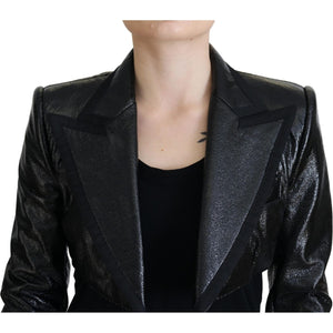 优雅短款黑色设计师夹克