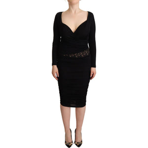 优雅的黑色心形领口紧身连衣裙