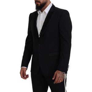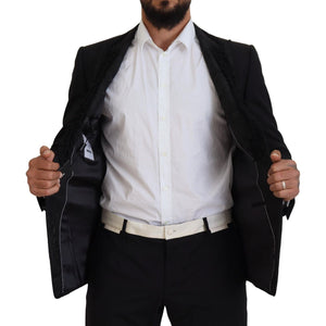 这款迷人的Dolce & Gabbana西装外套经过精心设计,可打造令人惊艳的正式外观,让您步入奢华世界。这款单排扣黑色西装外套采用精致细节,配有荷叶边翻领和时尚的双纽扣开合。非常适合晚会,它展示了美丽的黑色丝绸衬里,确保穿着舒适且略显奢华。这款作品自豪地产自意大利,是精湛工艺和永恒风格的体现。