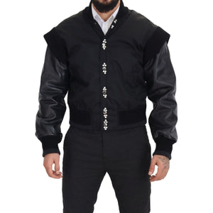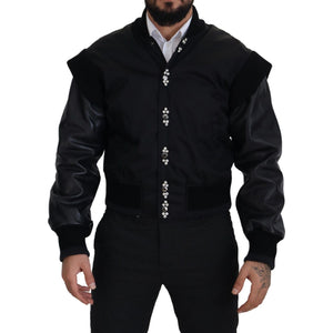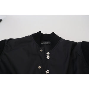 优雅黑色水晶缀饰飞行员夹克