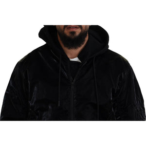 穿上这款绝对惊艳、100% 正品 Dolce & Gabbana 连帽飞行员夹克,时尚出门。这款夹克非常适合为您的衣橱增添一丝奢华感,采用全拉链闭合设计,配有两个外袋和两个内袋,既实用又不失优雅。意大利精制而成,采用时尚的黑色色调,确保多功能性和永恒的吸引力。徽标细节为这款精美单品增添了独特的触感,使其成为时尚人士的必备单品。