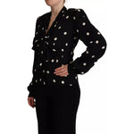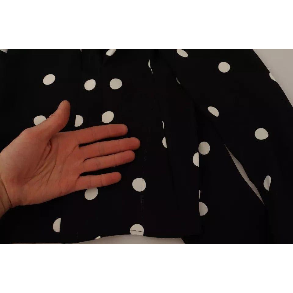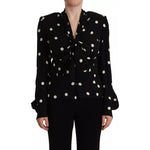 Dolce & Gabbana Black Polka Dots Silk Pussy Bow Long Sleeves Top