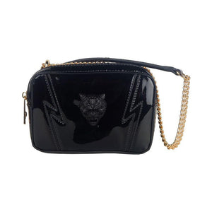 Plein Sport 肩包是奢华的典范。这款令人惊艳的配饰两侧均印有品牌标志,搭配时尚的链条肩带,散发出优雅气息。顶部的磁性开口可确保您的必需品安全且易于取用,而漆皮效果表面散发出精致的光泽,必定会引人注目。
