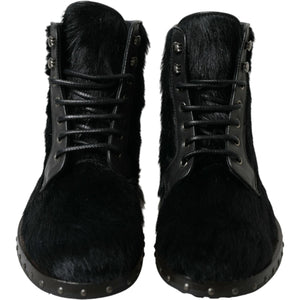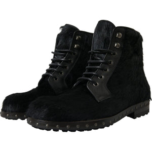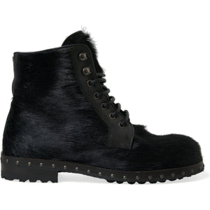 穿上这款由 Dolce & Gabbana 设计的惊艳中筒系带靴,踏入奢华的殿堂。这款靴子是时尚前卫人士的完美之选,采用精致的黑色小马皮革鞋面,搭配超轻天然橡胶鞋底,带来无与伦比的舒适感。每双靴子都彰显了意大利工艺,并饰有标志性的标志,确保您每一步都脱颖而出。