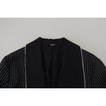 这款 Dolce & Gabbana 的迷人西装外套让您尽享奢华。这款独特的长袍式裹身式夹克,全新带标签,制作精良,注重细节,采用时尚的黑白配色方案,并饰有时尚的 DG 补丁。剪裁优雅,配有腰带,内衬奢华丝绸,确保每次穿着都散发出奢华气息。这款西装外套产自意大利,是永恒风格和精致的体现。
