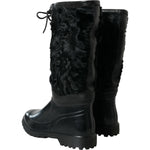 时尚黑色羊毛中筒靴