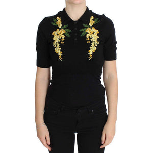 这款 Dolce & Gabbana 的黑色真丝 Polo 衫让您尽享精致的典范。这款单品饰有精美的黄色和绿色花卉刺绣,散发着优雅和奢华气息。这款上衣非常适合提升任何服装的档次,采用巧妙的四纽扣前开合和标志性徽标细节。穿上这款精美的服装,体验意大利制造时尚无与伦比的工艺。
