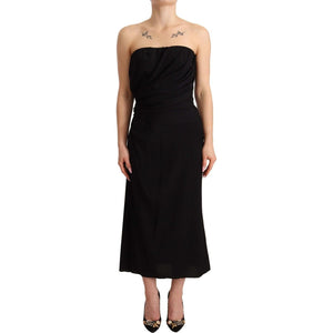 这款Dolce & Gabbana无肩带中长连衣裙彰显了意大利的奢华和精致。设计迷人,黑色色调与贴身轮廓相得益彰,采用奢华的丝绸和氨纶混纺而成,舒适而优雅。隐藏式侧拉链确保无缝外观,非常适合参加独家晚会或高调活动。