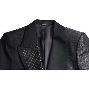 Dolce & Gabbana Black Silver Silk Single Breasted Coat Blazer