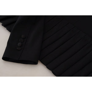这款 Dolce & Gabbana 精致黑色西装外套彰显意大利工艺的精髓。这款单排扣西装外套剪裁完美,宽大的尖头翻领搭配优雅的褶皱,轮廓精致。这款夹克采用奢华弹力羊毛制成,彰显别致优雅和多功能性,是提升商务和晚装着装品味的理想之选。