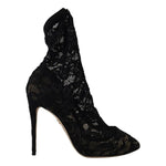 Dolce & Gabbana Black Stretch Socks Taormina Lace Boots Shoes