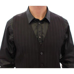 优雅黑色条纹羊毛连衣裙背心