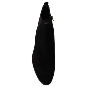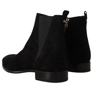 穿上这款来自 Dolce & Gabbana 的引人注目的黑色切尔西靴,走进奢华优雅的殿堂。这款靴子采用优质 100% 绒面皮革制成,配有时尚的侧拉链,确保稳固而时尚的贴合。它们产自意大利,代表着品质和高超工艺的巅峰。这款靴子配有弹性侧带,不仅贴合舒适,而且穿着轻松。穿上这双靴子,既能搭配正式服装,又能为任何服装增添一丝精致感。