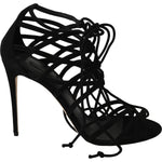 优雅黑色麂皮角斗士细高跟鞋