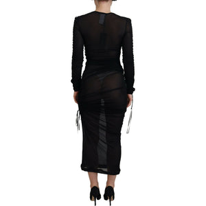 这款来自著名 Dolce & Gabbana 的迷人中长连衣裙让您沉浸在奢华的典范之中。这款连衣裙非常适合任何高级活动,采用长袖和修身紧身轮廓,在意大利精心制作,注重细节。这款黑色连衣裙饰有低调而标志性的标志,一定会给人留下优雅而持久的印象。