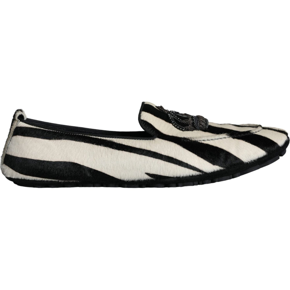 Dolce & Gabbana Black White Calf Fur Slip On Loafers Men Shoes