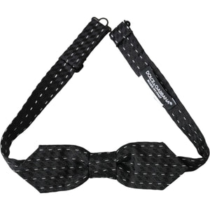 Dolce & Gabbana Black White Stitched Silk Men Neck Bow Tie