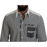 经典黑白条纹纽扣衬衫