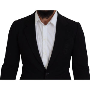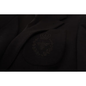 这款绝对令人惊艳的 100% 正品 Dolce & Gabbana 西装外套散发出精致气息,全新带标签。这款单排扣西装外套在意大利制作,采用时尚的黑色,胸前饰有独特的皇冠蜜蜂刺绣。其鲜明的轮廓配有两粒扣开合、三个外部口袋和两个内部口袋,可放置您的必需品。这款西装外套注重细节和奢华材料,是高级时尚和优雅的真正代表。