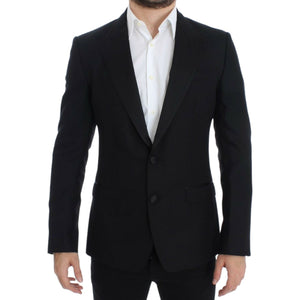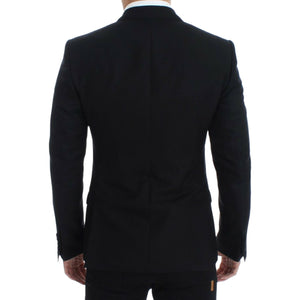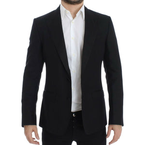 优雅黑色丝绸混纺西西里西装外套
