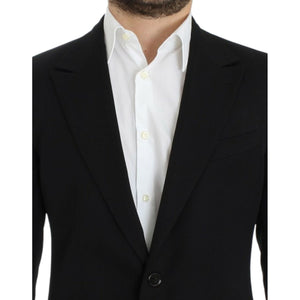 优雅修身版型黑色羊毛西装外套