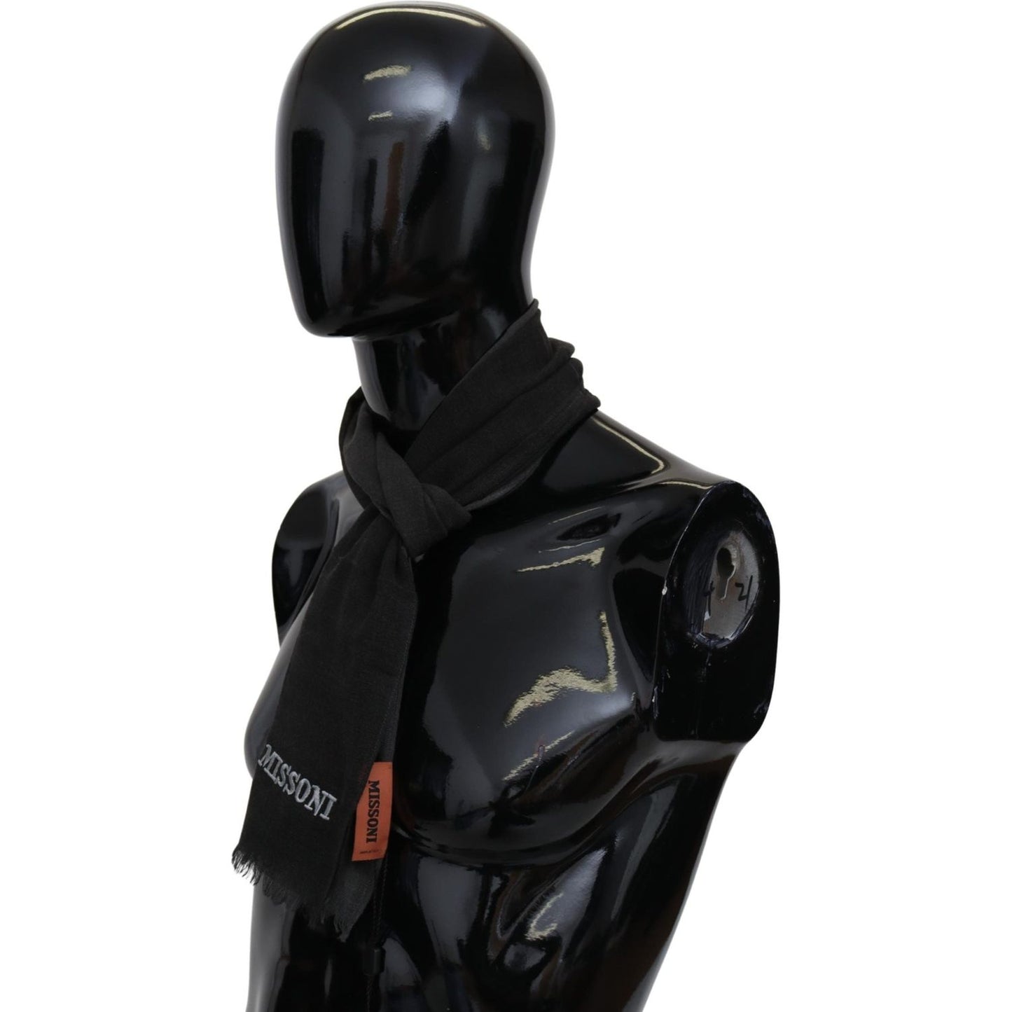 优雅的黑色羊毛围巾,带刺绣徽标