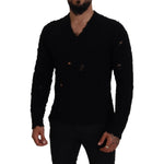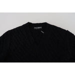 这款 100% 正品 Dolce & Gabbana 舒适黑色 V 领毛衣让您尽享奢华。其精致的羊毛混纺材料确保舒适和时尚,营造出精致的外观,并带有一丝休闲的穿着魅力。非常适合意大利顶级时尚爱好者。