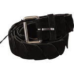 GF Ferre 的这款华丽全新腰带将让您的配饰更上一层楼。它采用时尚的黑色设计和独特的金属扣,完美融合了优雅与时尚。这款腰带在意大利制作,可为任何服装增添精致感,确保舒适合身。精致的 GF Ferre 徽标细节让知情人士一眼就能认出它。