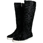 Dolce & Gabbana Black Xiangao Lamb Fur Leather Boots Shoes