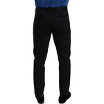 穿上这款 Dolce & Gabbana 的修身斜纹棉布裤,迈向精致。这款裤子华丽且全新,带有标签,是您精致装扮的必备单品。这款裤子采用弹力棉混纺面料制成,舒适而优雅,配有拉链和纽扣开合,外观时尚。这款裤子专为现代男士设计,采用迷人的蓝色,带有波尔多色调,融入标志性徽标细节,并在意大利精心制作。