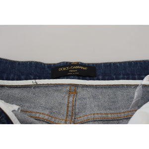 我们的优雅蓝色牛仔裤让您拥有完美而精致的外观。这些剪裁精美的裤子是任何时尚前卫衣橱的必备单品,体现了 Dolce & Gabbana 闻名的奢华品质。它们完美融合了舒适和优雅,确保您会珍惜修身的贴身效果。
