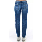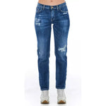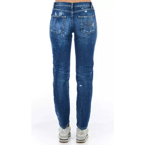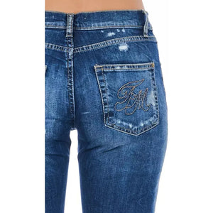 Frankie Morello 出品的这款蓝色棉混纺破洞洗水牛仔裤完美融合了舒适感和时尚感。这款牛仔裤专为凸显您的休闲时尚外观而设计,采用百搭的破洞洗水处理和多口袋设计,既方便又时尚。前部拉链和纽扣闭合确保安全而时尚的贴合感,是时尚前卫人士的理想选择。
