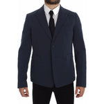 这款精致的蓝色西装外套采用精致的单排扣双纽扣前襟设计,可提升您的风格。采用 93% 棉、5% 真丝和 2% 氨纶制成,提供舒适的常规剪裁和来自著名 Dolce & Gabbana MainLine 系列的精湛工艺。这款西装外套在意大利制造,拥有独特的猫咪印花内衬、多种口袋选择和时尚的后开衩,更显优雅。它不仅仅是一件衣服;它是奢华和独特设计的宣言,体现了您的高雅品味。