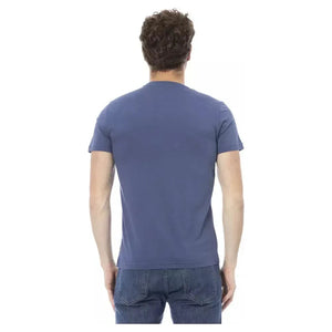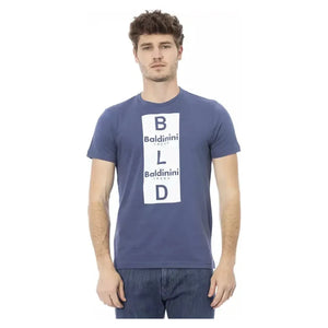 正面印花时尚蓝色棉质 T 恤