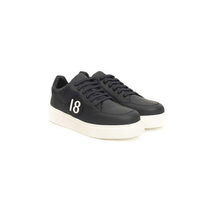 男士真皮运动鞋。橡胶鞋底。侧面有标志。