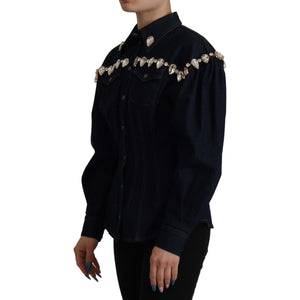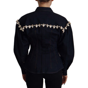 这款令人惊艳的 Dolce & Gabbana 深蓝色牛仔夹克完美融合了高级时尚与休闲优雅。这款奢华夹克饰有精美的水晶,为您的日常装扮增添一抹魅力。这款夹克在意大利制作,采用常规剪裁,适合任何身材。这款夹克配有全纽扣前襟和标志性的品牌徽标细节,保证兼具时尚感和舒适感。它采用略带弹力的优质棉混纺面料制成,确保活动自如,同时保持其光滑的外形。这款非常独特的作品将为您带来奢华的缩影,展现出 Dolce & Gabbana 的卓越工艺。