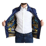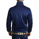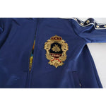 Absolutely stunning, 100% Authentic, Dolce & Gabbana blue sweatshirt with a large heraldic patch on the left chest with wide star panels accentuate the sleeves, and a striped motif on the waistband and cuffs.