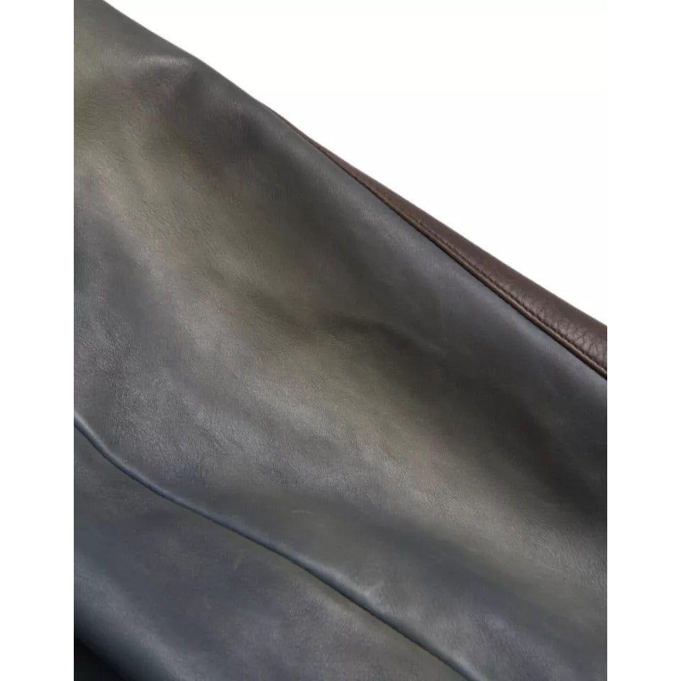 Dolce & Gabbana Blue Leather Full Zip Biker Blouson Jacket