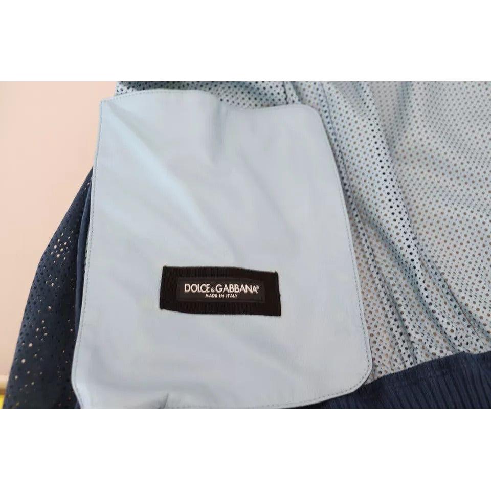 Dolce & Gabbana Blue Leather Perforated Full Zip Jacket