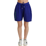 蓝色徽标棉质高腰运动短裤