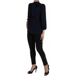 Dolce & Gabbana Blue Long Sleeves Ascot Collar Blouse Top