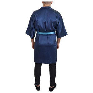 Dolce & Gabbana Blue Satin Silk Waist Belt Robe Jacket