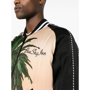 black/multicolour padded design all-over graphic print ribbed band collar long raglan sleeves piped-trim detailing to the sleeve ribbed cuffs and hem striped borders embroidered logo at the chest two front jetted pockets internal slip pocket full lining front zip fastening Logo varsity jacket Size and Fit - This piece fits true to size. We recommend you get your regular size. Model is 1,84m / 6ft 1in wearing size M