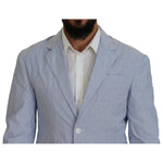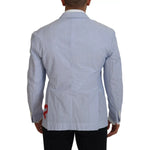 蓝色条纹单排扣正装外套