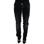 优雅深蓝色修身牛仔裤