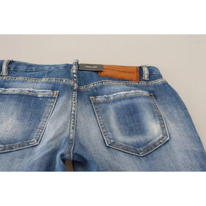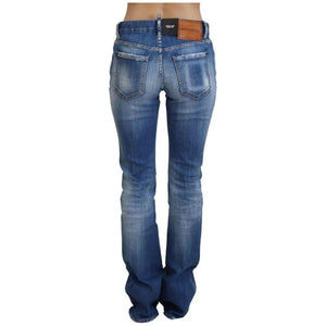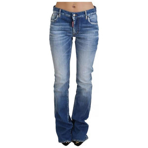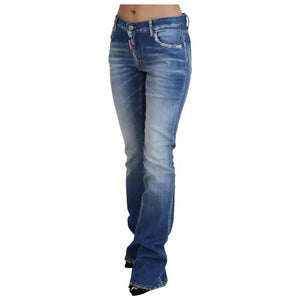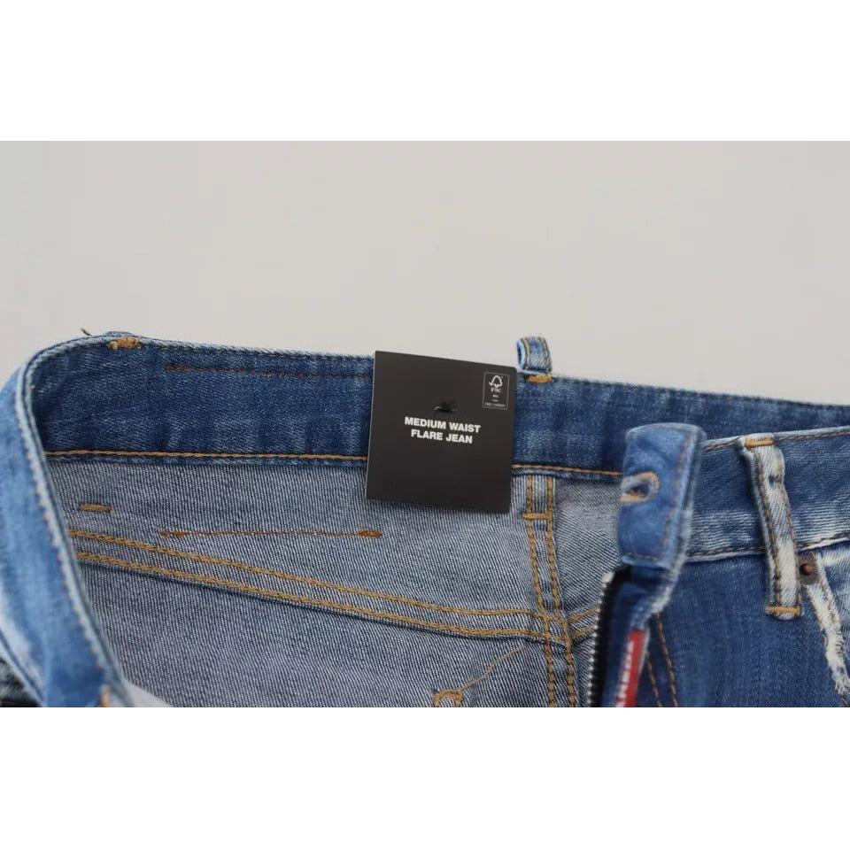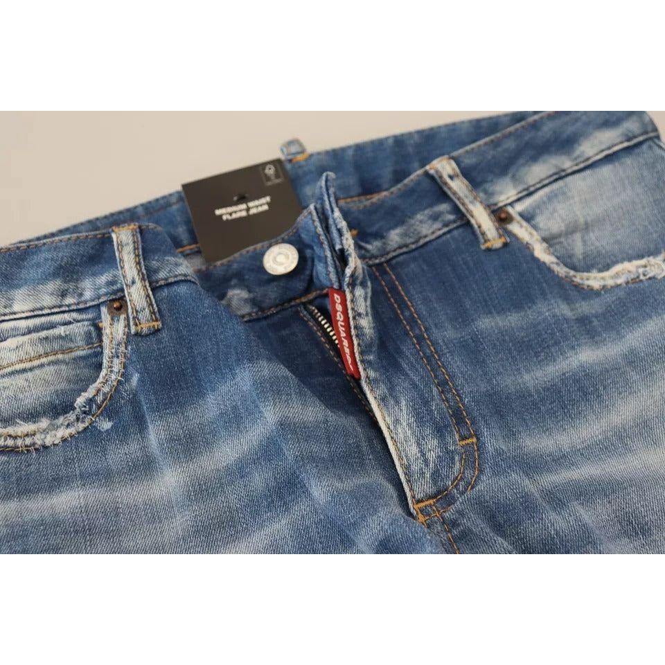 Dsquared² Blue Washed Cotton Mid Waist Flared Denim Jeans