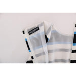 这款连衣裙采用无袖设计和蓝白条纹,百搭又时尚,适合任何场合,轮廓时尚。高品质丝绸混纺面料垂坠感十足,弹力十足,完美贴身。