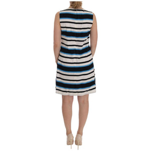 优雅无袖条纹真丝直筒连衣裙