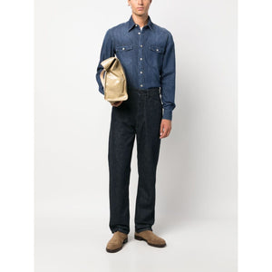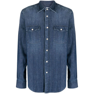 denim button-down shirt from BOGLIOLI featuring blue, cotton, denim, spread collar, front button fastening, two front button-fastening jetted pockets and buttoned-cuff sleeves. Denim button-down shirt Size and Fit - This piece fits true to size. We recommend you get your regular size. Model is 1,84m / 6ft 1in wearing size 39 (COLLAR CM)